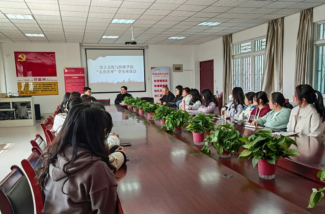 语言文化与传媒学院深入学习贯彻党的二十大精神,坚持立德树人根本任务,努力构建德智体美劳全面培养的育人体系。学院于2023年3月2日召开学院“五育并举”学生座谈会,学院副院长殷明明主持会议,教学办主任章衡、院分团委负责人刘政和各班学生代表参会。