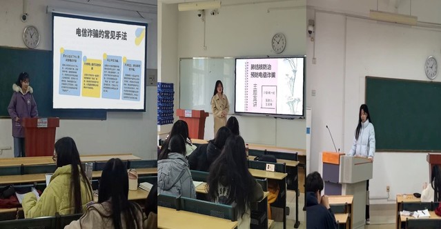 活动上,宣传委员从电信诈骗的主要类型及典型特征进行讲述,帮助同学们熟悉生活中常见的诈骗形式,引导同学们注意其中陷阱,增强同学们在生活中遇到诈骗现象灵活应对的防范意识。