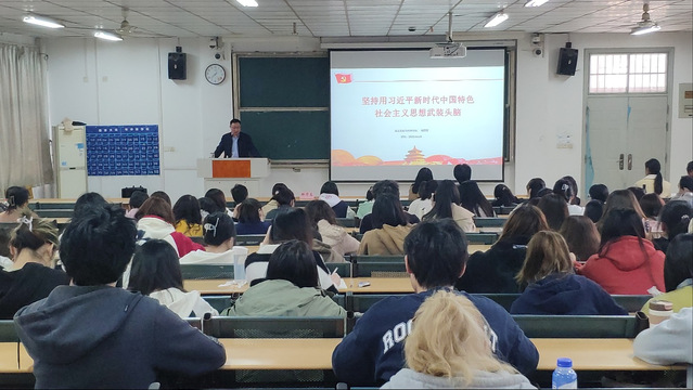 4月25日中午,语言文化与传媒学院2023年入党积极分子培训班第一次理论授课在善思楼C座101教室举行,本次党课由学院党委书记储昭辉讲授,题目为《坚持用习近平新时代中国特色社会主义思想武装头脑》,本期入党积极分子培训班全体学员参加。