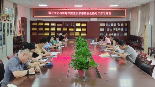 9月19日,语言文化与传媒学院在二楼会议室召开了2023年下半年意识形态暨安全稳定工作专题会,分析研判部署我院今年秋季学期意识形态和安全稳定工作。学院党政领导、科级干部以及各党支部书记、各系(室)中心主任、辅导员参加会议,会议由院党委书记储昭辉主持。