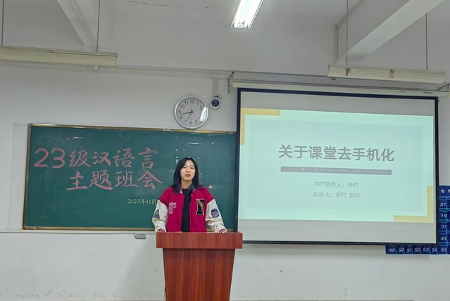本次班会主要分为两个内容。首先,班长鲁同德对文传学院“抓学风新措施”作出安排,要求以寝室为单位,订立寝室公约,并上交至辅导员审核,审核完成后张贴在寝室内贯彻落实。这一举措的作用将在宿舍卫生,安全,纪律,宿舍成员关系方面体现:在卫生方面,寝室公约可以增强讲卫生观念,提高讲卫生意识;在安全方面,可以减少宿舍失窃风险,保护宿舍成员财产及人身安全;在纪律方面,可以规范宿舍成员言行举止,营造和谐互助寝室氛围。在宿舍成员关系方面:可以有效规避舍友之间的摩擦及冲突,防患于未然。最后,鲁同德提出:在寝室公约订立之后,所有成员应知约,记约,守约,公约的约束力不止在行为,更在每个舍员心中,只有将公约的红线牢记于心,才能共创文明美好的规范寝室。在第二部分,学习委员华竹针对班级现有问题,即课堂上手机使用过度导致同学们听课效率低,老师教学进度放缓的现象,提出了“课堂去手机化”提议,并以此向同学们提出几点要求:首先是自我监督,以个人为单位进行自我约束,确保在上课时手机离手,专心听课;其次是互相监督,周围同学在必要时提醒不必要使用手机的同学。