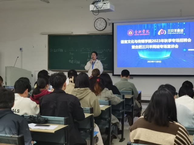 为使学生更加深入了解用人单位,促进校企合作,强化校友联系,我院还组织了校友企业合肥三只羊网络在35号楼207教室召开了专场宣讲会。会上,招聘工作人员介绍了公司的企业文化、现有产业结构、组织框架、规章制度,并对同学们关注的福利待遇、人力资源政策等方面作了详细说明。该企业拟招聘100人,宣讲会结束后,参会学生就重点关注的岗位条件,晋升发展途径及薪资待遇等问题开展现场交流,踊跃投递简历。