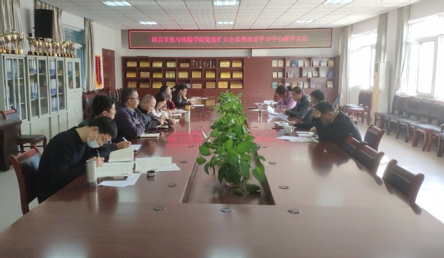 12月8日上午,语言文化与传媒学院在学院大会议室召开党委扩大会议暨理论学习中心组学习会,学院党政领导班子成员、党委委员、纪委委员、科级干部及各党支部书记、系(中心)主任参加会议,会议由院党委书记储昭辉主持。