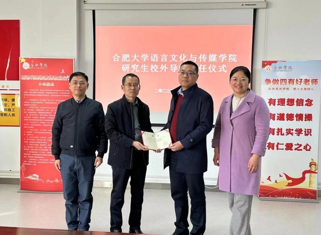 为进一步推进人才培养和学术研究工作,提升硕士研究生培养质量,拓展研究生培养资源,完善协同育人机制,127日,语言文化与传媒学院于一区善思楼C座大会议室顺利举行了研究生校外导师聘任仪式。安徽省安策智库创始人陈丹、语言文化与传媒学院院长丁增武、院党委副书记张爱萍、副院长殷明明出席此次聘任仪式。