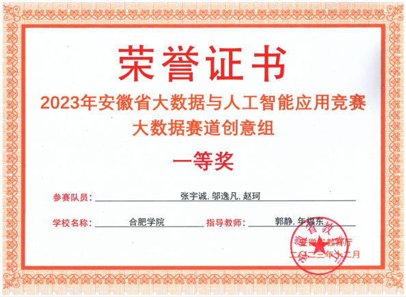 近日,由安徽省教育厅主办,安徽各大高校承办的2023年安徽省大数据与人工智能应用竞赛评选结果公布,在语言文化与传媒学院郭静老师和先进制造工程学院年福东老师的指导带领下,我院21级新闻学专业的张宇诚、赵珂与城市建设与交通学院22建筑学专业的邬逸凡组成的“智慧新闻队”成功进入决赛,其参赛项目《基于语音语义感知的智能新闻视频素材剪辑平台》在大数据赛道(创意组)中脱颖而出,荣获一等奖。