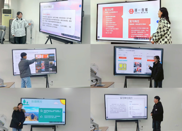 随后,“3+1”媒企实训答辩在个会场同时进行,教师评委认真听取学生汇报并提出问题,学生进行要回答,同时提出教学建议。