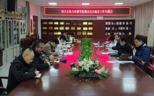 2024年1月16日,语言文化与传媒学院召开了期末安全稳定工作专题会议,院领导班子成员、科级干部及各系(中心)主任、本科生、研究生辅导员等参加了会议,会议由语言文化与传媒学院党委书记储昭辉主持。