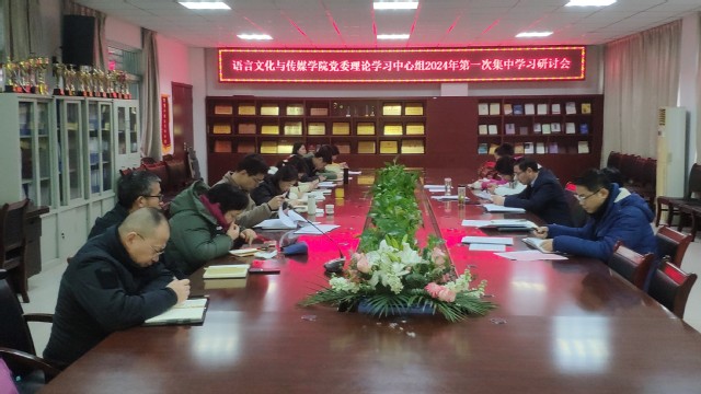 1月16日上午,语言文化与传媒学院在学院大会议室召开党委理论学习中心组2024年第一次集中学习研讨会,学院领导班子成员、党委委员、纪委委员、科级干部及各党支部书记、系(中心)主任参加会议,会议由院党委书记储昭辉主持。