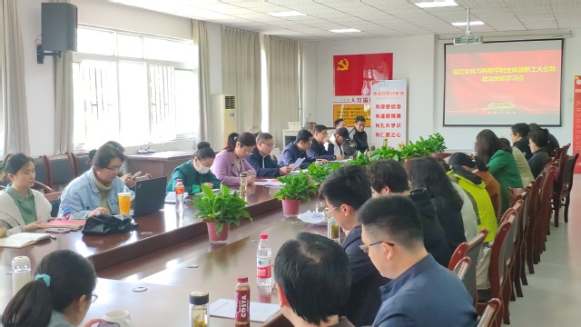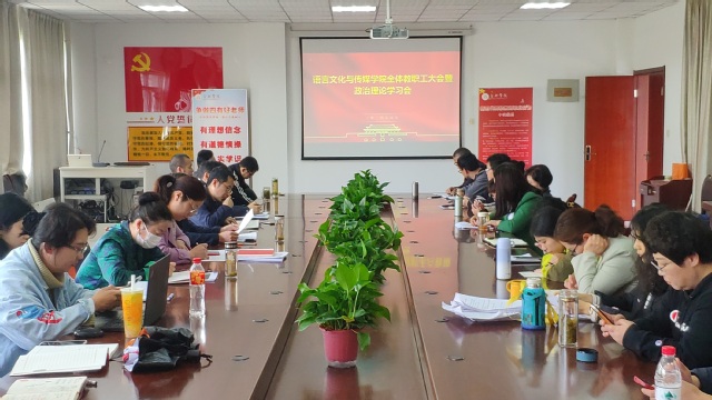 4月9日下午,语言文化与传媒学院在5栋大会议室召开全体教师大会暨政治理论学习会,全体教师参加会议,会议由院党委书记储昭辉主持。
