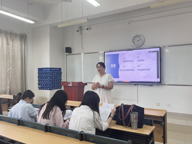 本次预开题共分为四组,学生到论文指导老师所在小组参加开题。在答辩现场,每位学生依次上台,围绕自己的毕业论文开题进行了选题汇报,内容主要涵盖研究背景、研究目的、研究内容、研究方法、创新点等方面,导师及论文小组老师认真听取了学生的陈述, 针对开题报告中存在的问题,提出了具体的修改意见和建议。答辩过程中,老师们对开题报告中存在的争议点进行提问,学生们则认真思考,准确回答。通过这一环节,不仅检验了学生对论文选题的掌握程度,也锻炼了她们的应变能力和表达能力。预开题答辩现场氛围紧张而有序,充分展现了文传学院严谨治学的精神风貌。