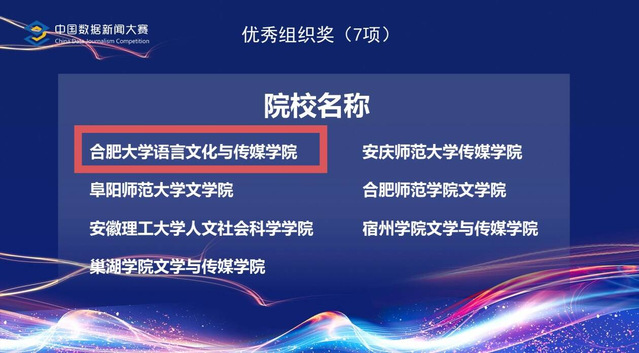 此次大赛中,文传学院师生共获奖22项,其中一、二、三等奖18项,优秀指导教师奖2项,优秀组织奖1项,特别奖1项。我院新闻与传播专业硕士研究生纪冰洁作为获奖学生代表上台发言,分享自己的参赛感悟。据悉,此次大赛共有来自全省16所院校233支队伍参赛,共收到249件参赛作品,参赛队伍数量、参赛作品数量均创历史新高并在今年的中国数据新闻大赛省级赛区位列第一。经大赛组委会邀请专家评审,共有65件作品入围决赛,其中我校入围决赛作品18件。