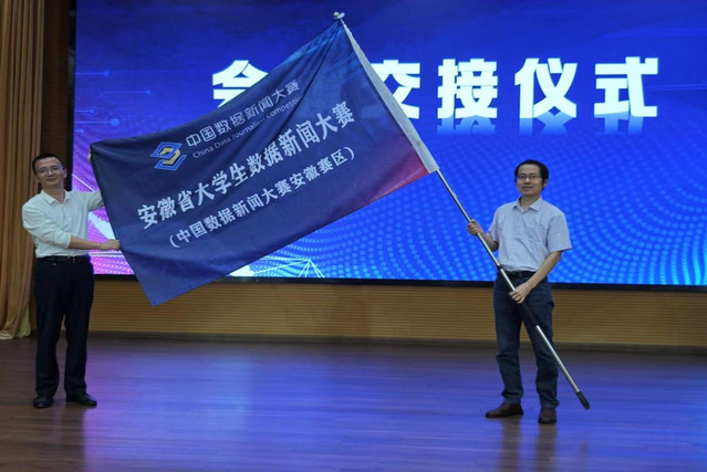 9月28日,语言文化与传媒学院院长丁增武,新闻与数字传媒系主任张冰清、副主任王书川,以及新闻与数字传媒系教师林世华等带领学院学生前往巢湖学院,参加第九届中国数据新闻大赛安徽省赛暨第三届安徽省大学生数据新闻大赛决赛颁奖仪式。丁增武院长作为下届比赛承办方代表与巢湖学院文学与传媒学院彭正生院长进行了会旗交接,并发表致辞。