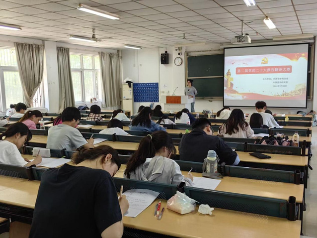 为深入学习贯彻落实习近平总书记关于学校思政课建设的重要指示,自觉担起主体责任,不断开创新时代思政教育新局面,2024年5月16日,外国语学院紧密融合大学生思想政治理论学习和外语专业翻译能力的实践,顺利举办第二届党的二十大报告翻译大赛。