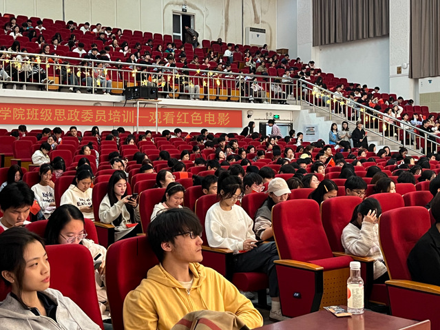 为深入学习贯彻党的二十大精神,加强学生思想政治教育工作,把握时代主旋律、创新思政工作模式,11月5日晚,我校班级思政委员系列培训之观看红色电影活动在一期致用礼堂举行,全体班级思政委员和受邀学生参加此次活动。
