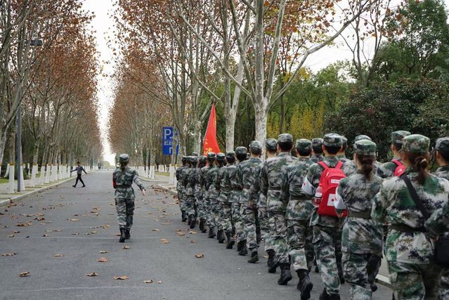 上午7时,全体队员集合完毕,队伍整装待发。清晨阳光正好,国旗和队旗熠熠闪光。一路上行进队伍步履铿锵、歌声嘹亮,展现出当代大学生的青春激昂与积极向上。数小时长途跋涉后顺利抵达渡江战役纪念馆。这一过程让大家坚信前路漫漫,也有尽头,终点再远,也会抵达。拉练活动不仅夯实了参训队员的身体素质,也切实加强了组织的凝聚力和向心力。