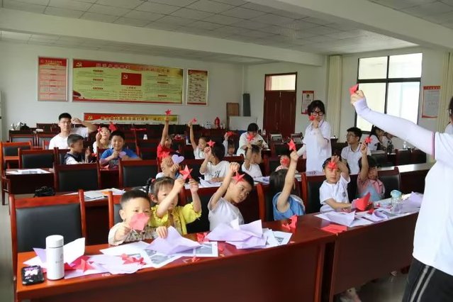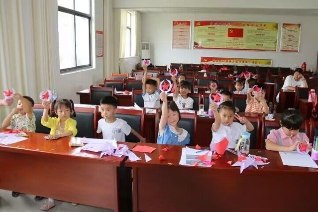 7月3日上午九点三十分,“传星星之火,忆百年党恩”志愿团在太平畈乡村委会会议室举办了“红心寄于纸,纸上生红星”手工折纸活动。
