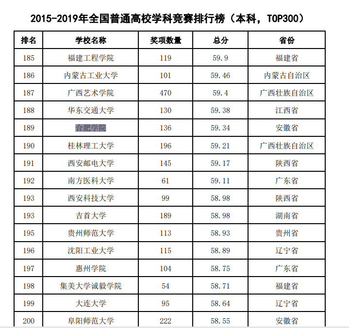 我校进入2015-2019年全国普通高校学科竞赛排行榜,位列189位,全省第8位。