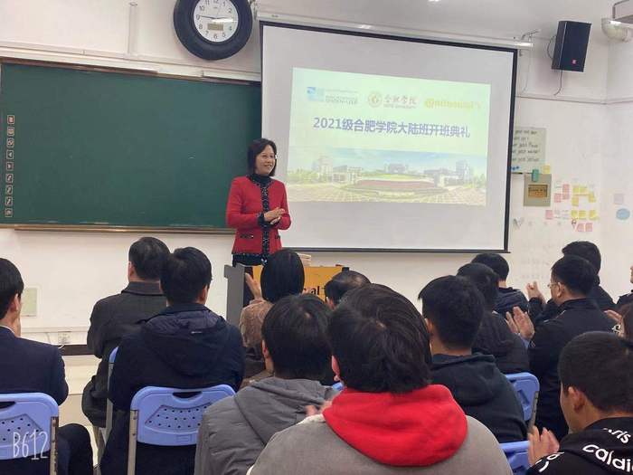 12月15日下午,合肥学院2021级(第六届)大陆班开班仪式在生化楼隆重举行。校长吴春梅、德国大陆马牌轮胎(中国)有限公司总经理王小骥应邀出席,开班典礼由先进制造工程学院院长吕刚主持。