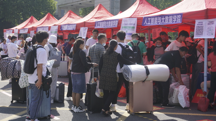 2022级新生在工作人员和志愿者的引导下,在各学院报到点依次排队,有序进行录取通知书核查、“两码”查验、48小时内核酸检测阴性报告检查、行李消毒、体温检测,随后办理相关入学手续,由志愿者带领前往学生社区。2022级人工智能与大数据学院数学与应用专业的本科生颜诗婷说:“报到的过程十分顺利,遇到很多帮忙拿行李的学长学姐,大家都非常热情!”2022级经济与管理学院工商管理专业的本科生刘安琦说道:“很开心能够进入大学校园,我对未来的大学生活充满了期待,希望能在合院交到志同道合的好朋友。”2022级先进制造工程学院电子信息专业的研究生赵森林说道:“我的本科四年就是在合院度过的,再次回到母校我的心情十分激动,接下来的读研时间里,我将会以更加优秀的姿态迎接美好未来!”